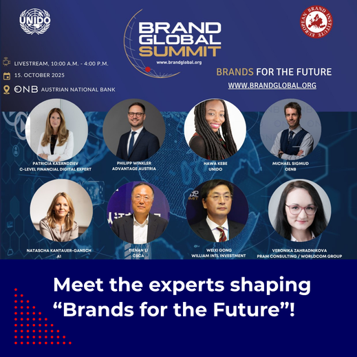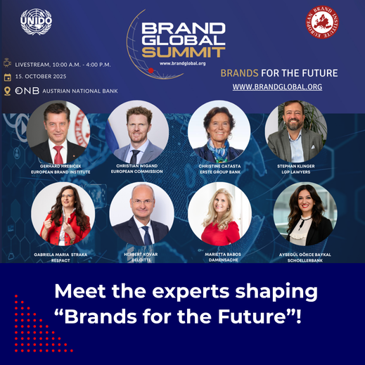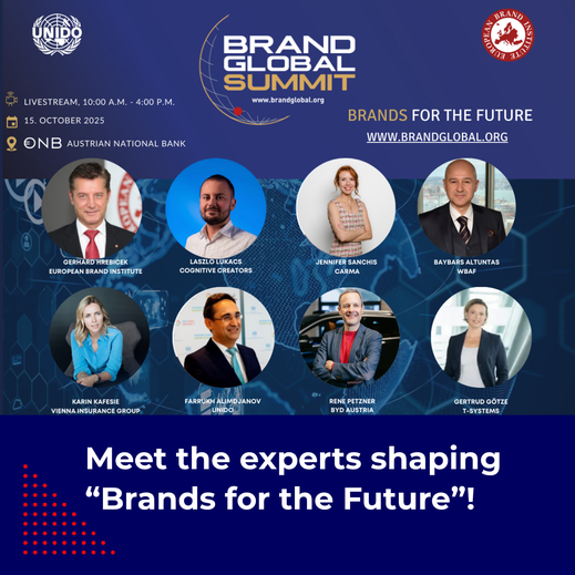 The European Brand Institute, in cooperation with UNIDO, the Oesterreichische Nationalbank (OeNB), and esteemed partners from the business sector, cordially invites you to the 21st Brand Global Summit on October 15, 2025, hosted at the Oesterreichische Nationalbank and Vienna City Hall.