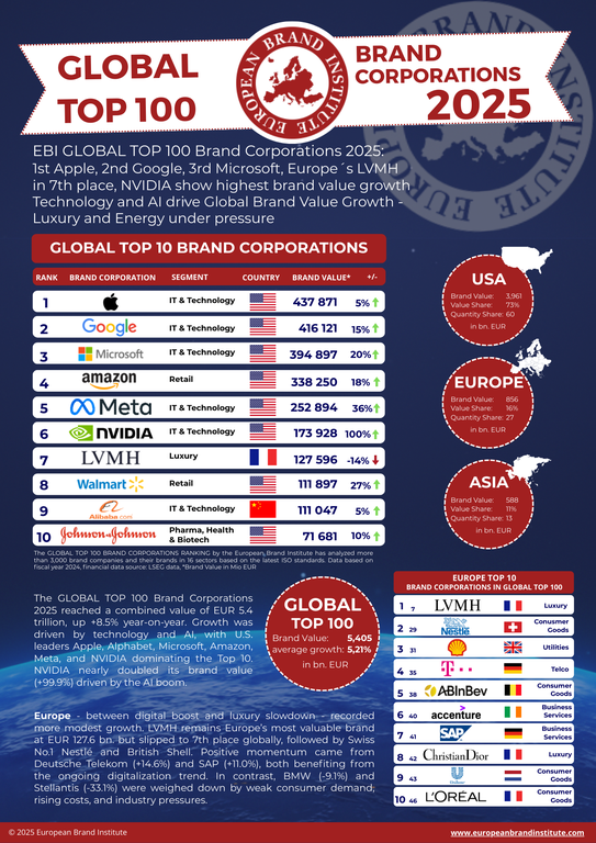 EBI GLOBAL TOP 100 Brand Corporations 2025: Technology and AI drive Global Brand Value Growth - Luxury and Energy under pressure